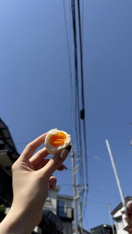 今日は暖かかったのでお外でゆで卵を食べました!…