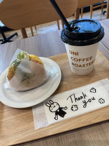 うさぎかいてもろた🥰ユニコーヒーのドーナツが美味しそうで気に…